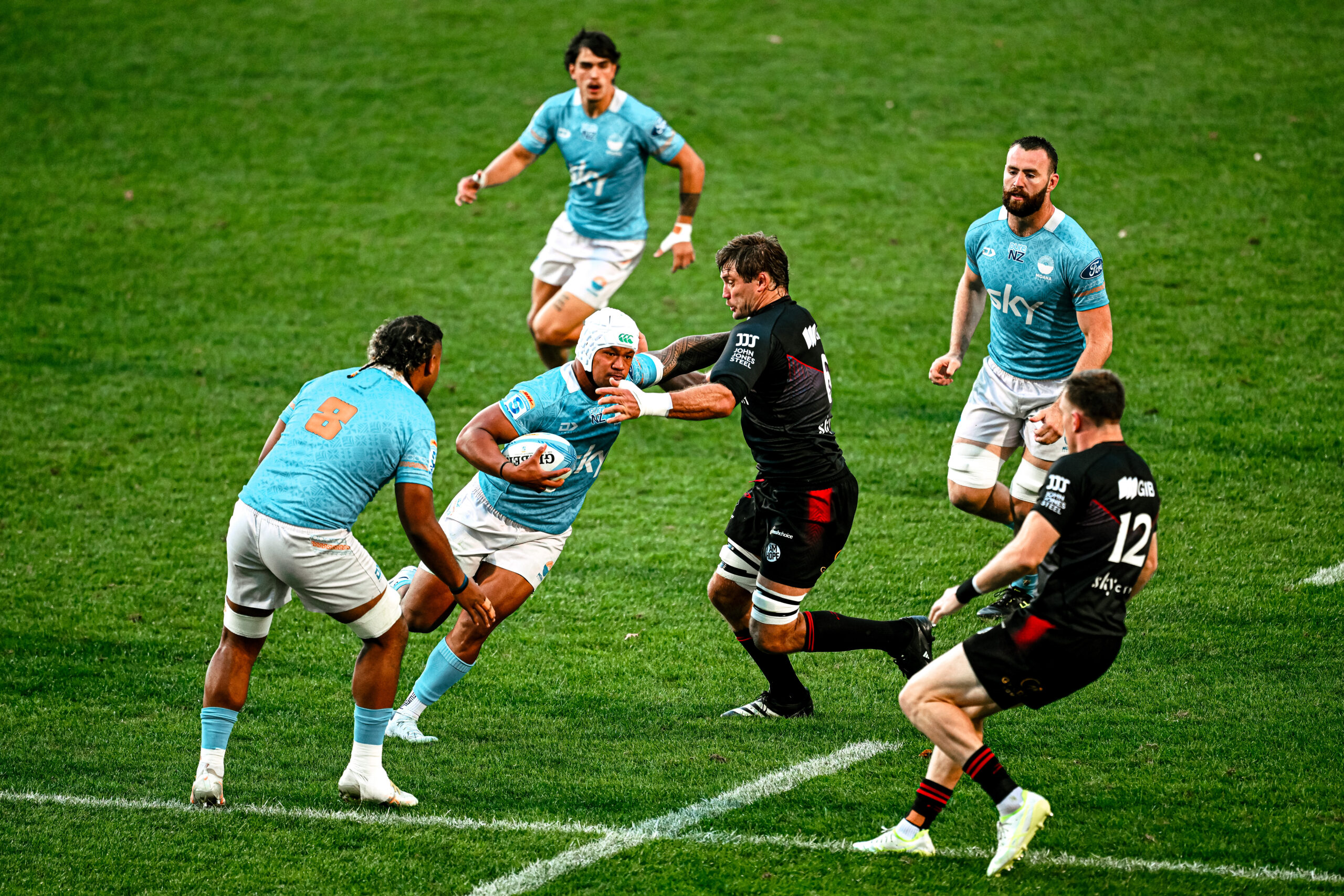 Tevita Ofa crossed the line for Moana’s first try, after coming off the bench in the first few minutes to replace an injured Julian Savea. His try was off the back of a powerful carry from captain Miracle Faiilagi, who played with tenacity all night.